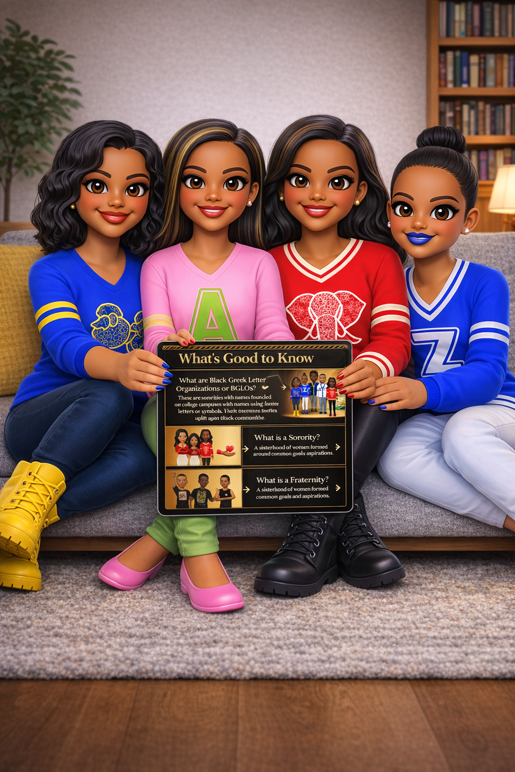 Blaqmoji is proud to present 'Who Are We?' a vibrant, full-color introduction to the Divine Nine. Instead of a dry history lesson, discover a living, breathing snapshot of culture, tradition, and pride—showing how Black Greek life has ALWAYS been about the values of Sisterhood/Brotherhood, Scholarship, Service, Leadership and Uplifting the Black Community!